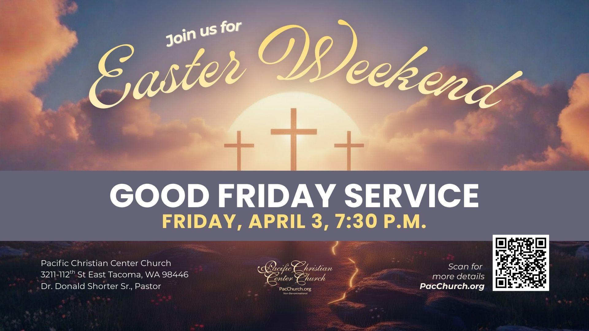 April 3 @7:30 pm -8:30 pm. Join us for Good Friday Service
