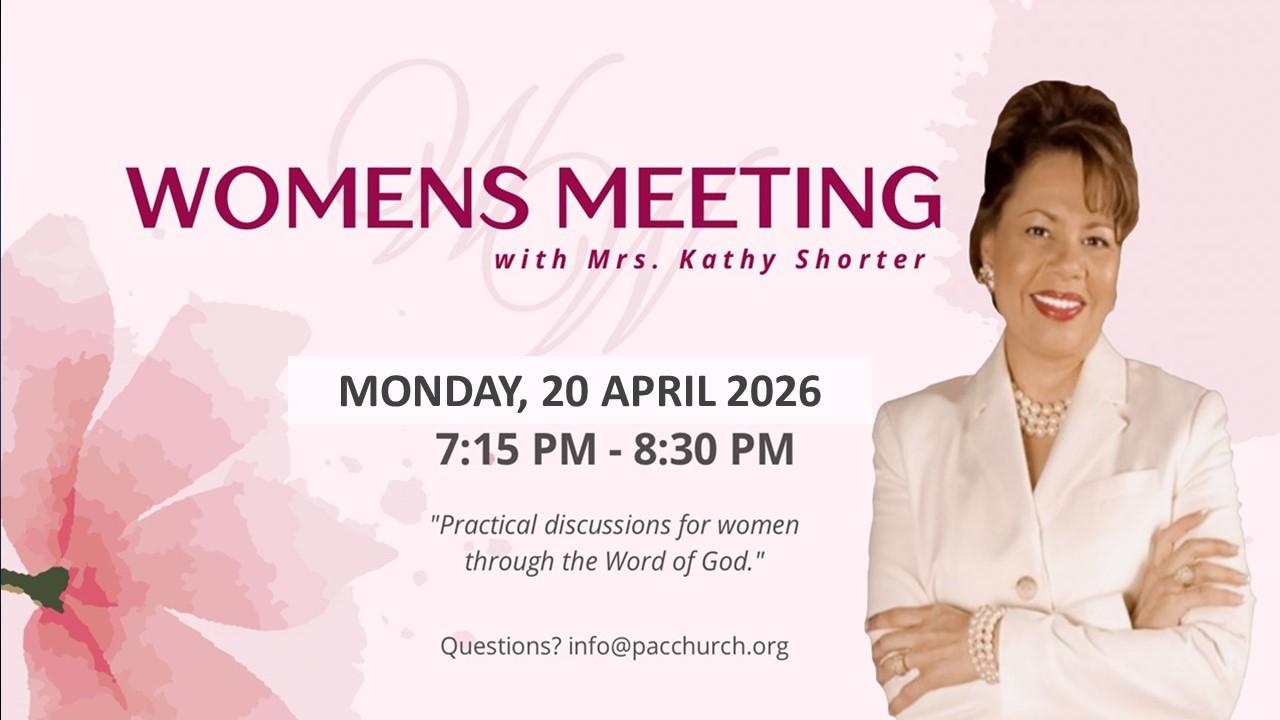 April 20 @ 7:15 pm - 8:30 pm. Women join us for an inspiring time in the Word of God.